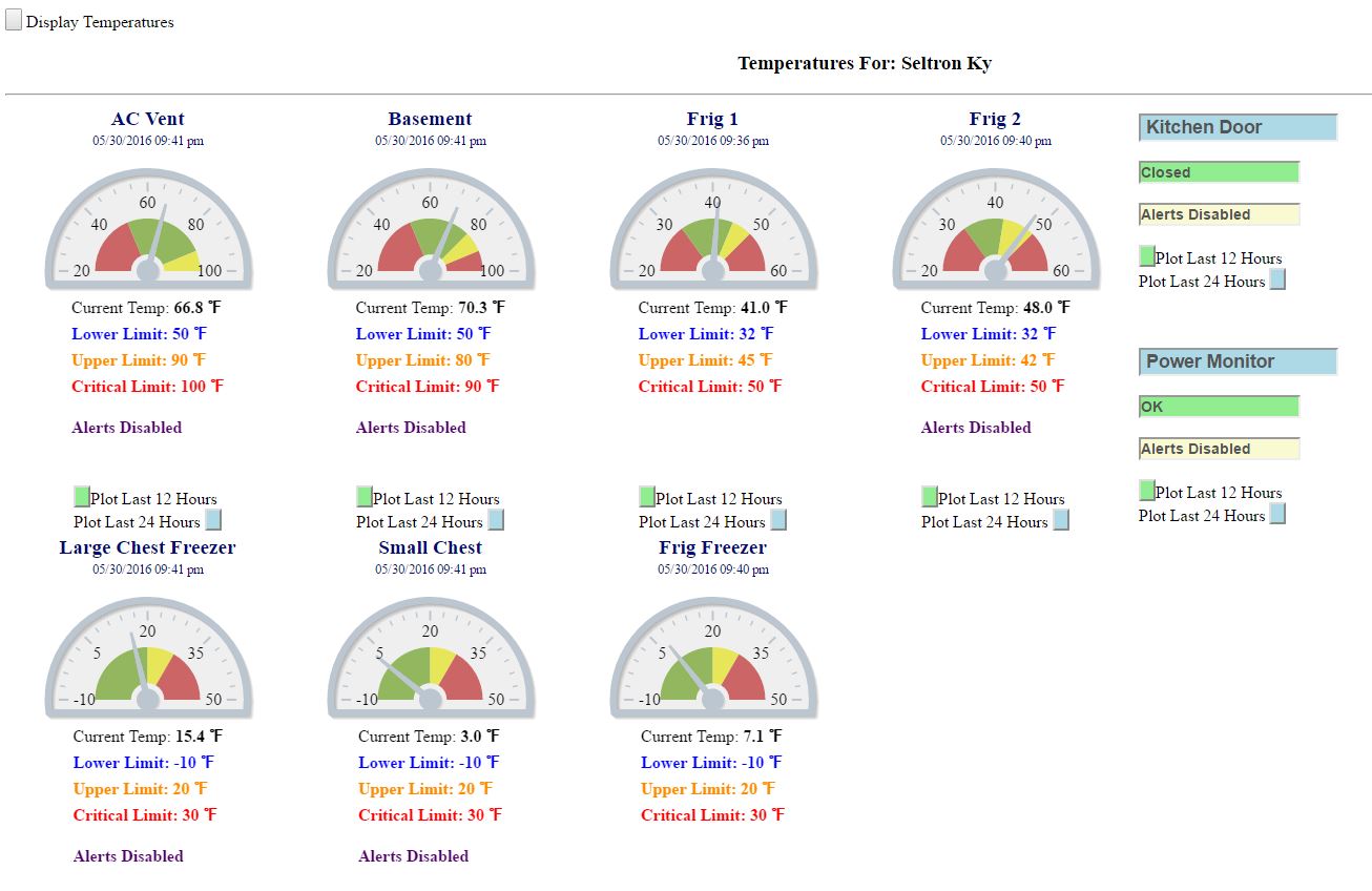 Gateways are where the magic of the system happens, they controls how often the hardwired sensors are monitored. They processes the messages from the wireless RF sensors and forward that information to the cloud server. The Store and Forward Gateway provides the extra features of locally storing data with the time it was received to the nearest second. It keeps that information until it has been successfully uploaded to the cloud server. This allows drop outs of the local Internet or WiFi to not result in a loss of data. With an attached battery pack, the Store and Forward Gateway could go on road trips in the back of a refrigerated supply truck and when it returns home, dump the days readings for review. |